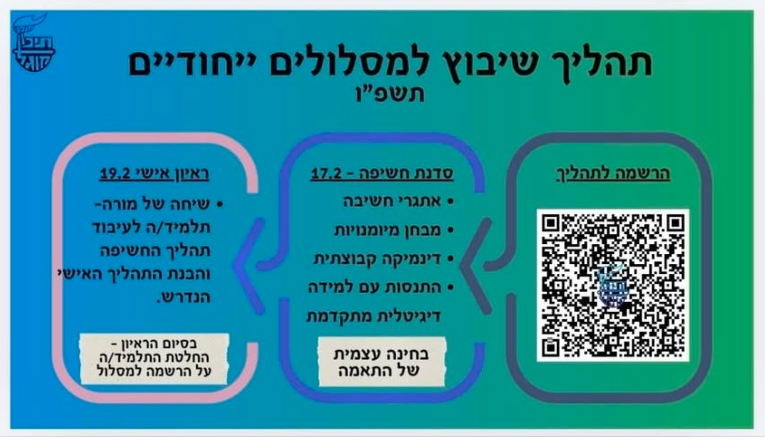 יש להגיע עם תעודת סיום כיתה ה' ועם תעודה מהמחצית הראשונה של כיתה ו'.